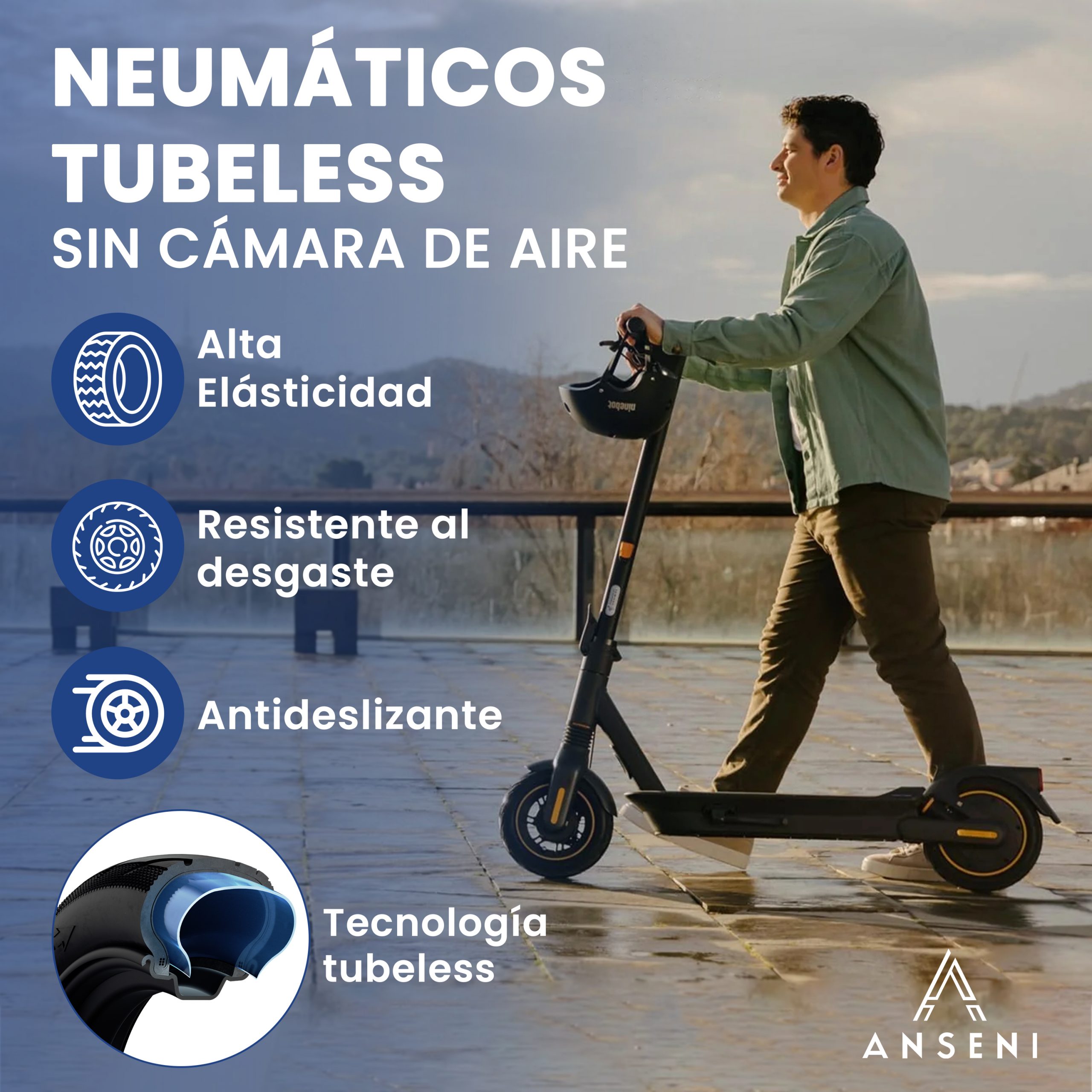 - 【Rueda Tubeless】Tubelizar o hacer tubeless una rueda significa que nuestro patinete va a dejar de llevar cámaras, la principal ventaja de no llevar cámara es que con este sistema se reduce el riesgo de pinchazos, y más cómoda.